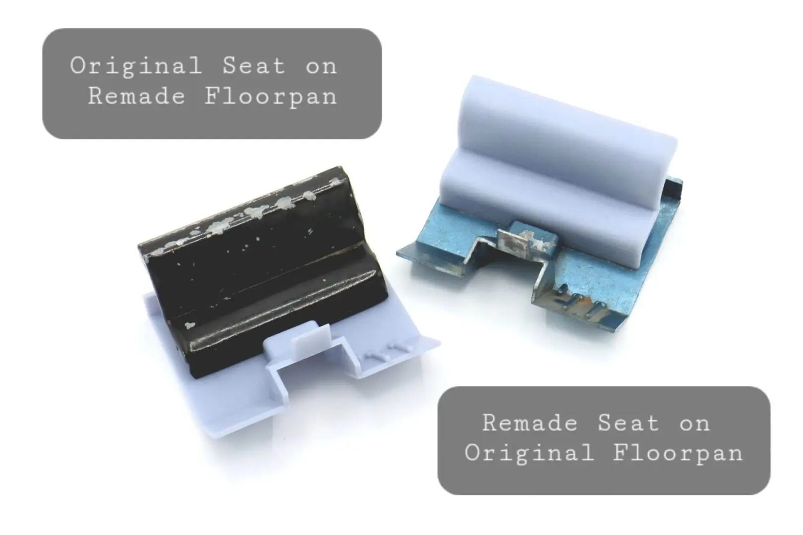 The seat mounts to the floorpan using a 4-40 screw, just like the originals!