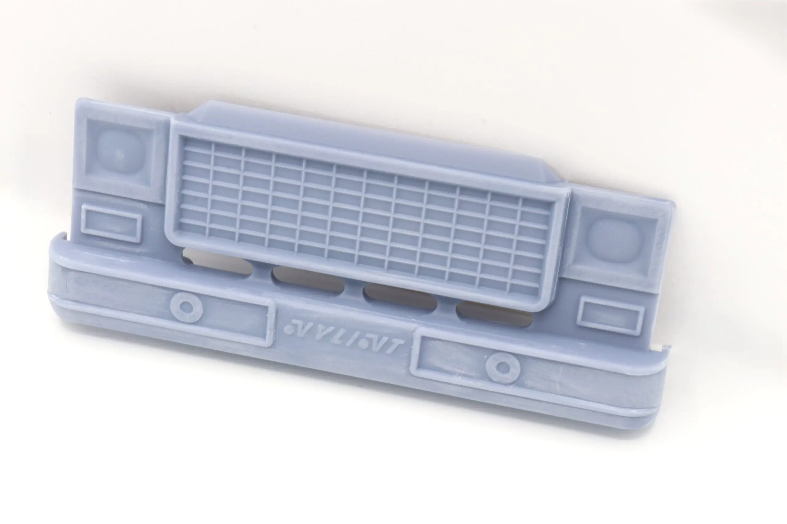 This grill is designed to replace the original style grill for the Chevrolet C–10 and Blazer trucks made by Nylint in the 1970s and 1980s. This grill has been customized by deleting the Nylint bowtie, allowing for a custom pickup. This style grill is the earlier, less commonly seen grill that uses pegs to mount to the trucks.