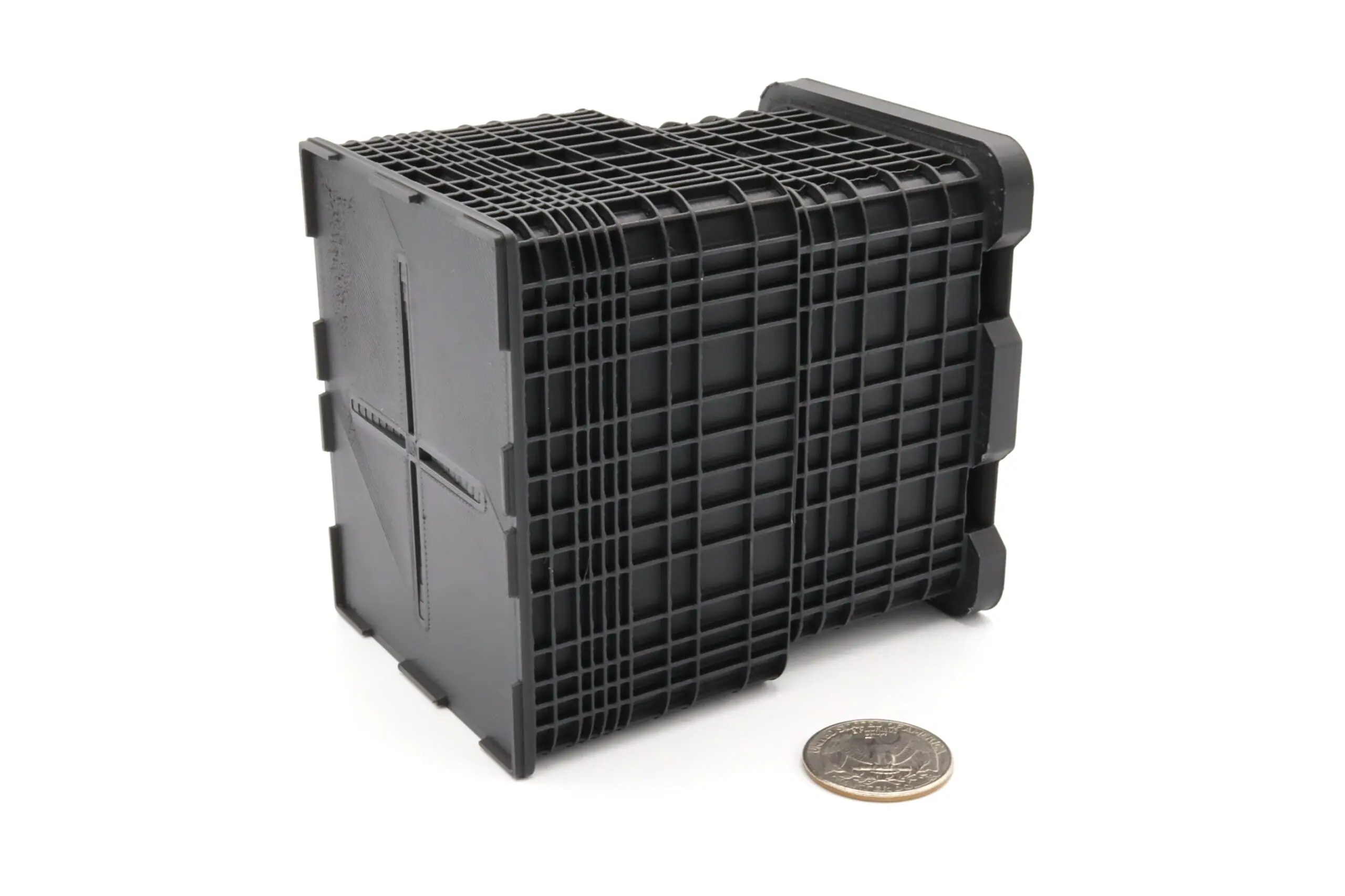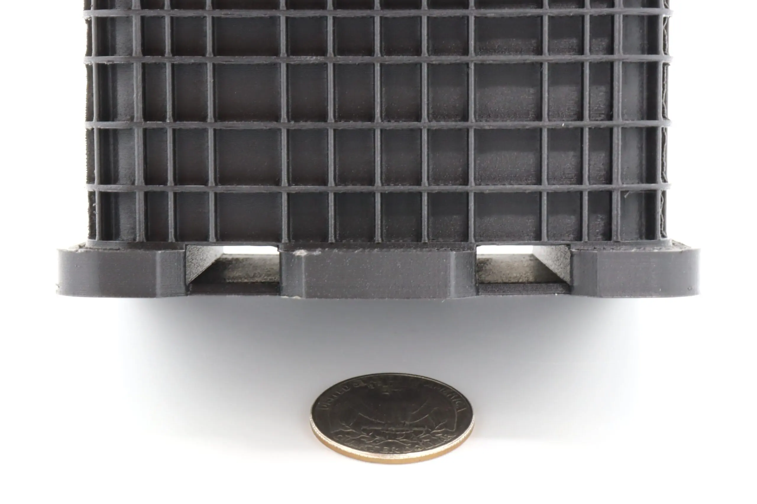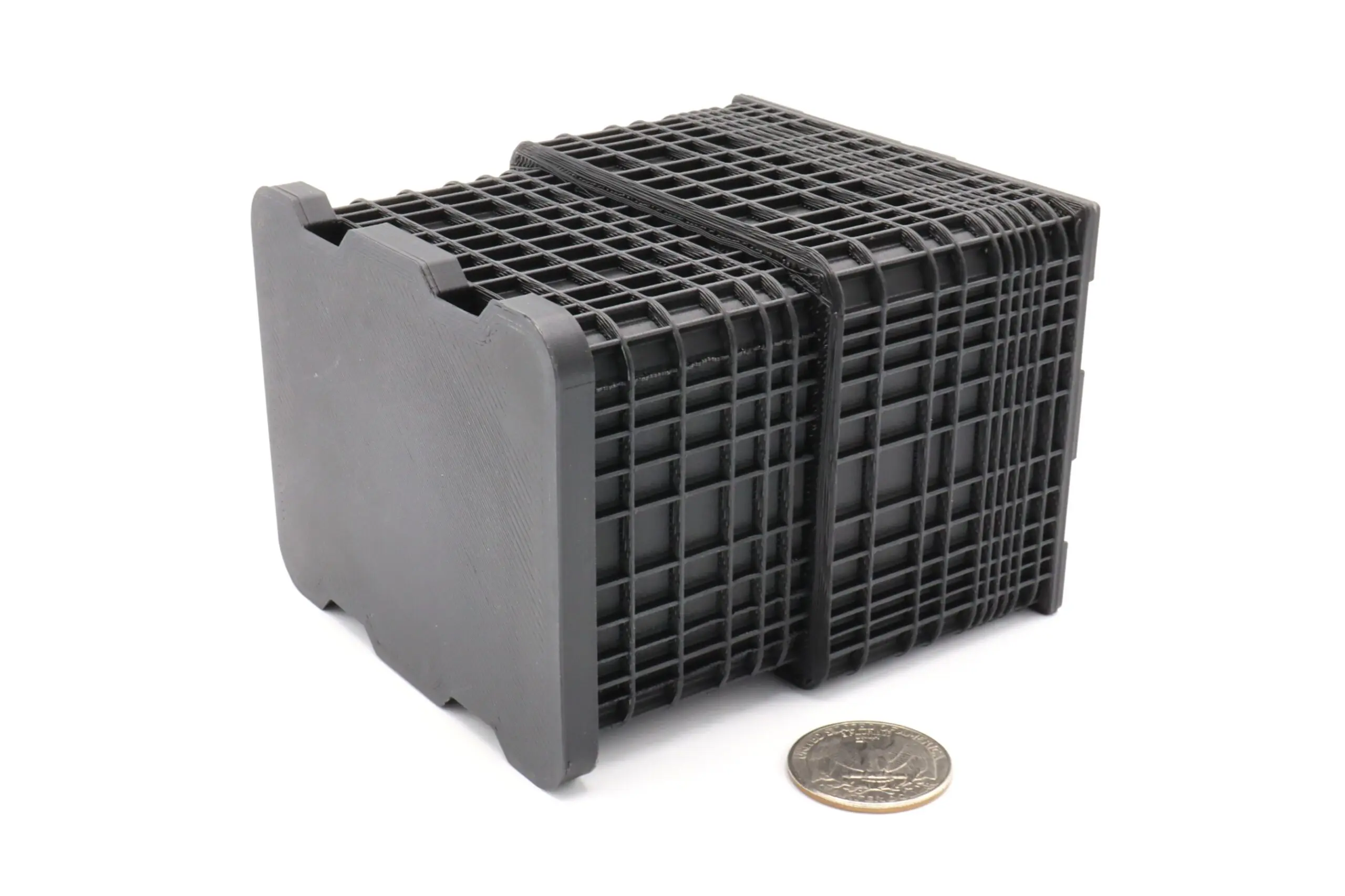 This product is 3D printed using a durable plastic material. Fine layer lines are present on finished product.