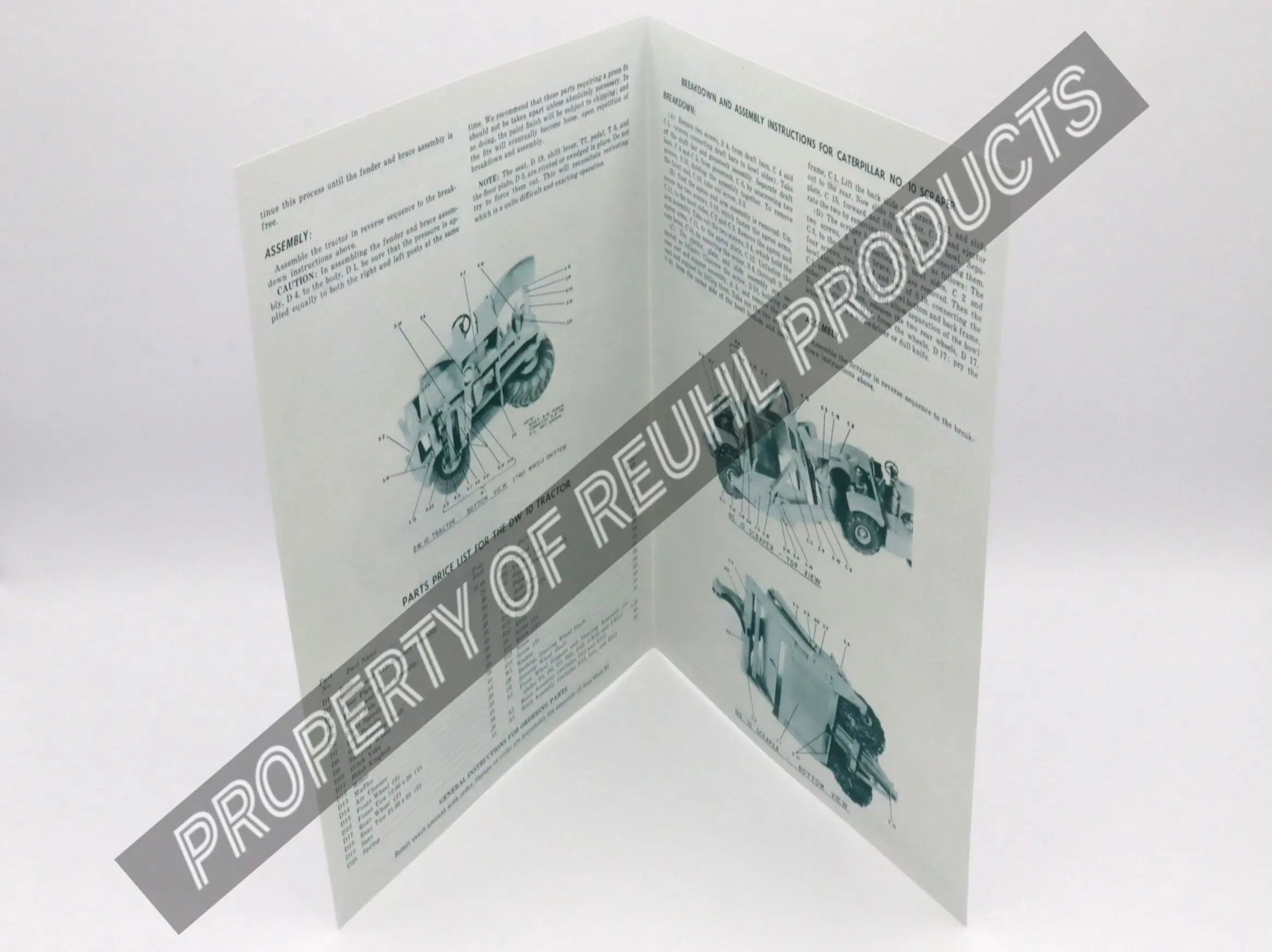 This sale is for an official Reuhl reprinted Breakdown and Assembly Instructions insert for the DW 10 Tractor, No. 10 Scraper, and No. 70 Scraper that would have originally accompanied the toy from the factory. The instructions sheet includes detailed instructions on disassembly and reassembly as well as a list of parts and their original replacement price.