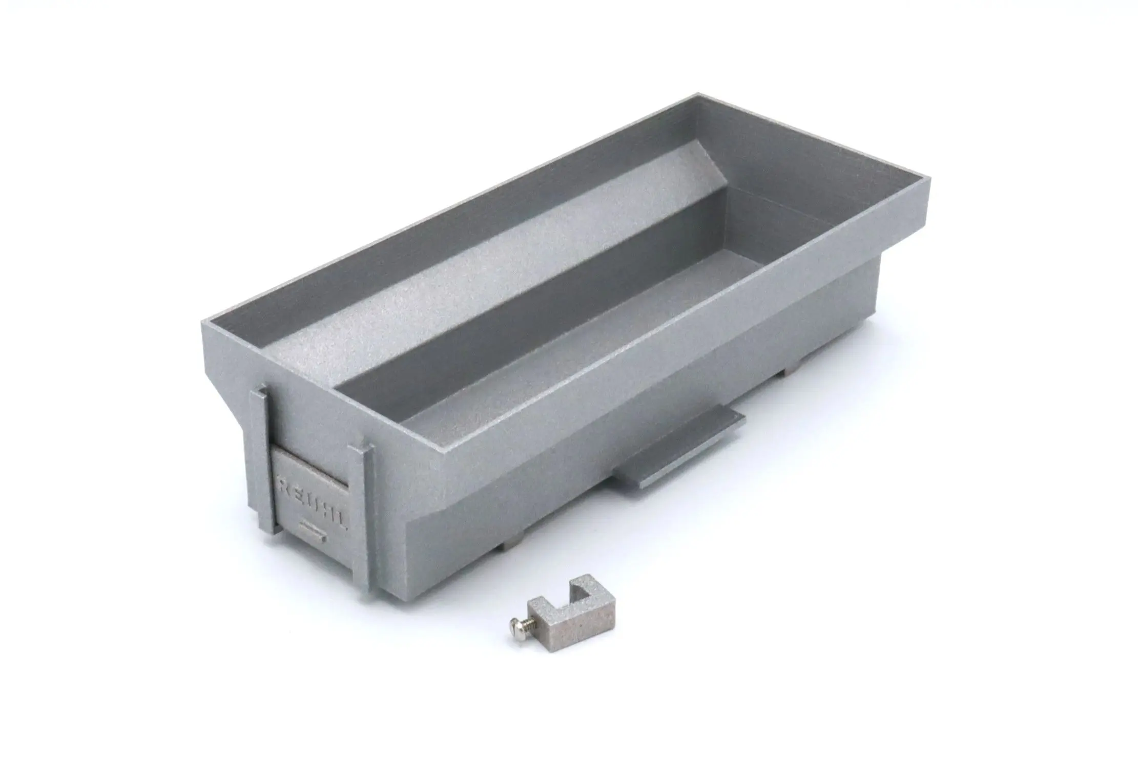 This product is 3D printed using a durable plastic material that has been coated in zinc to provide a galvanized appearance.