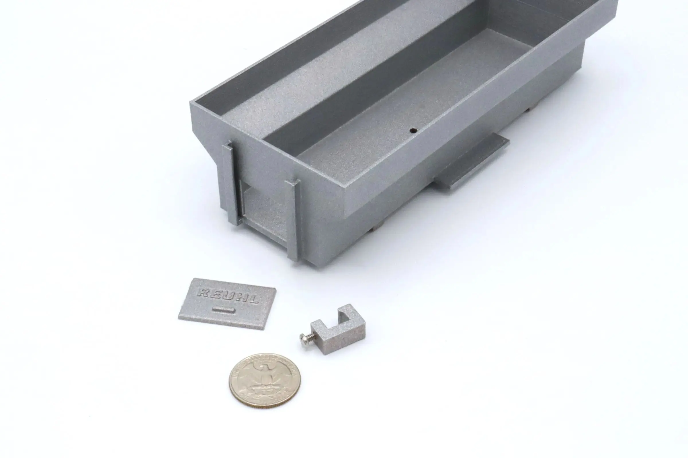 This item is a 3D printed flare box with it’s endgate door, mounting reach, and mounting screw (to attach to your Reuhl running gear just as the Roadmaster wagon does). All pieces are carefully packaged into their own Reuhl box.