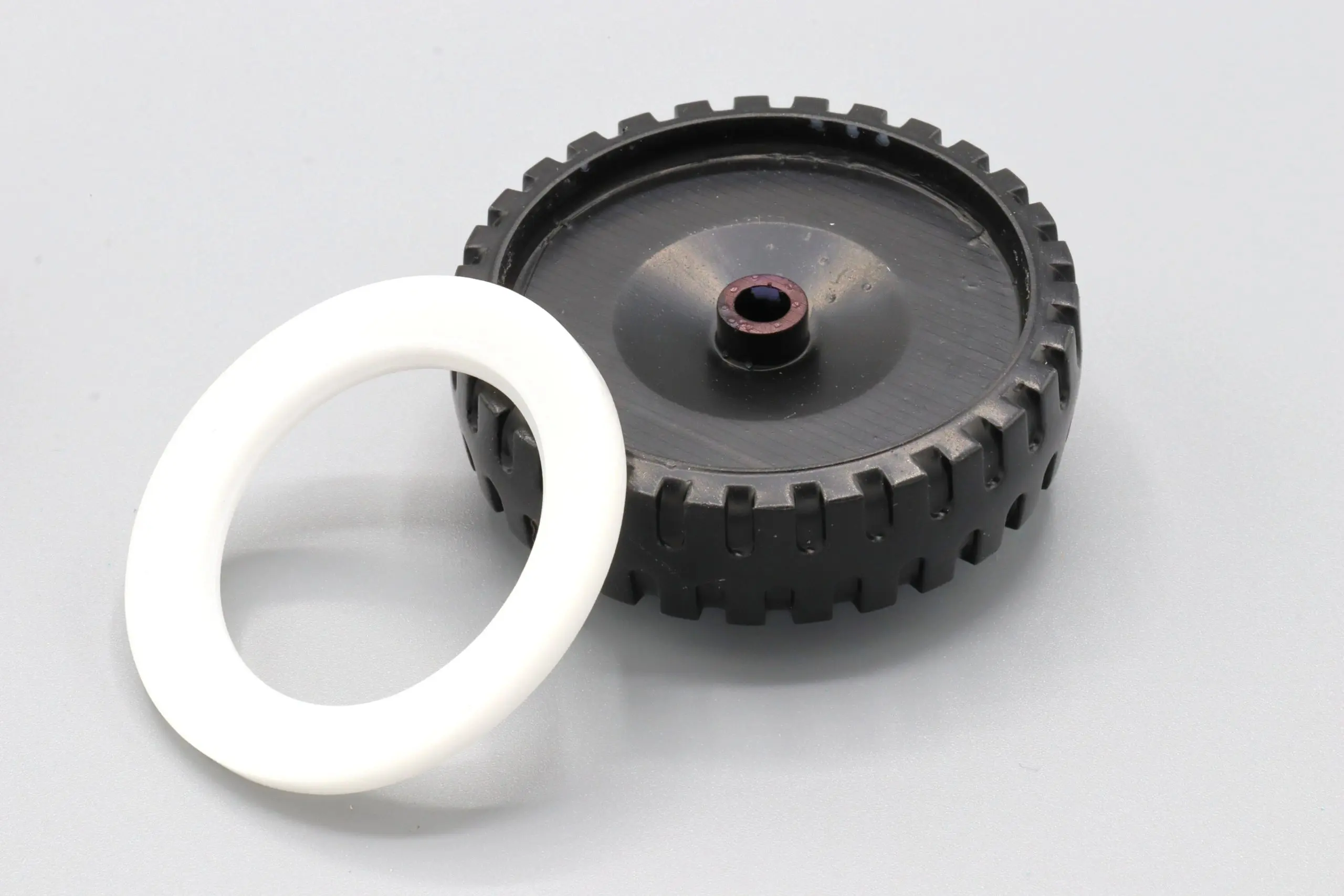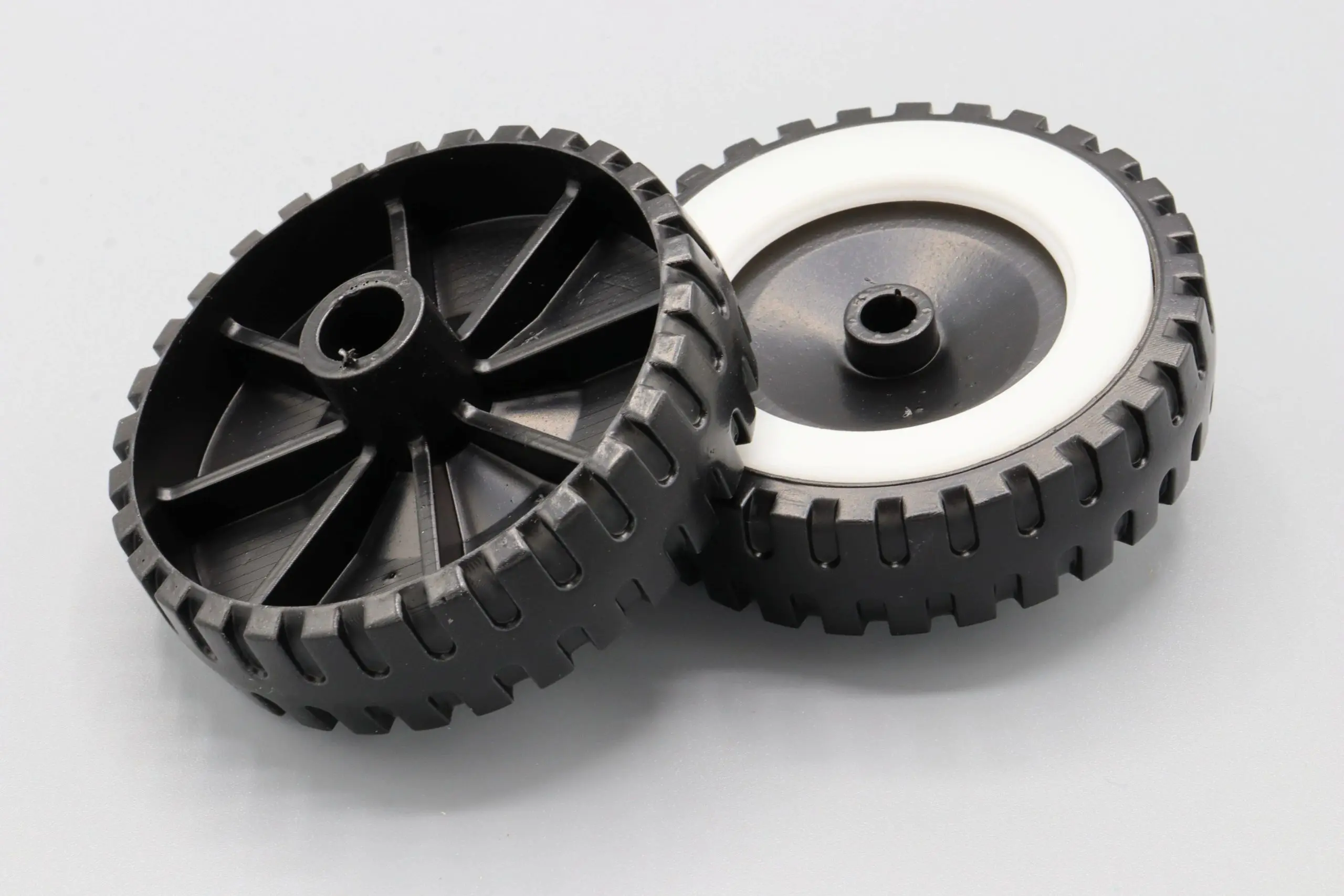 The original Loadstar truck by Ertl featured solid plastic wheels with whitewall inserts and a stamped rim. These front wheels are a single piece wheel as a direct replacement for the original.