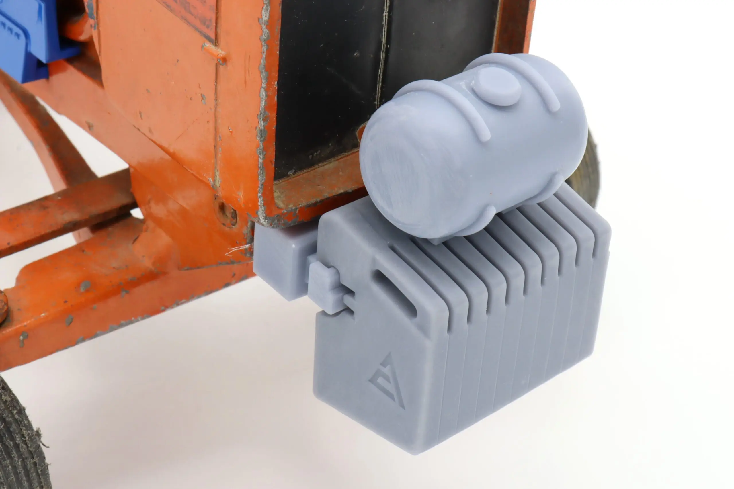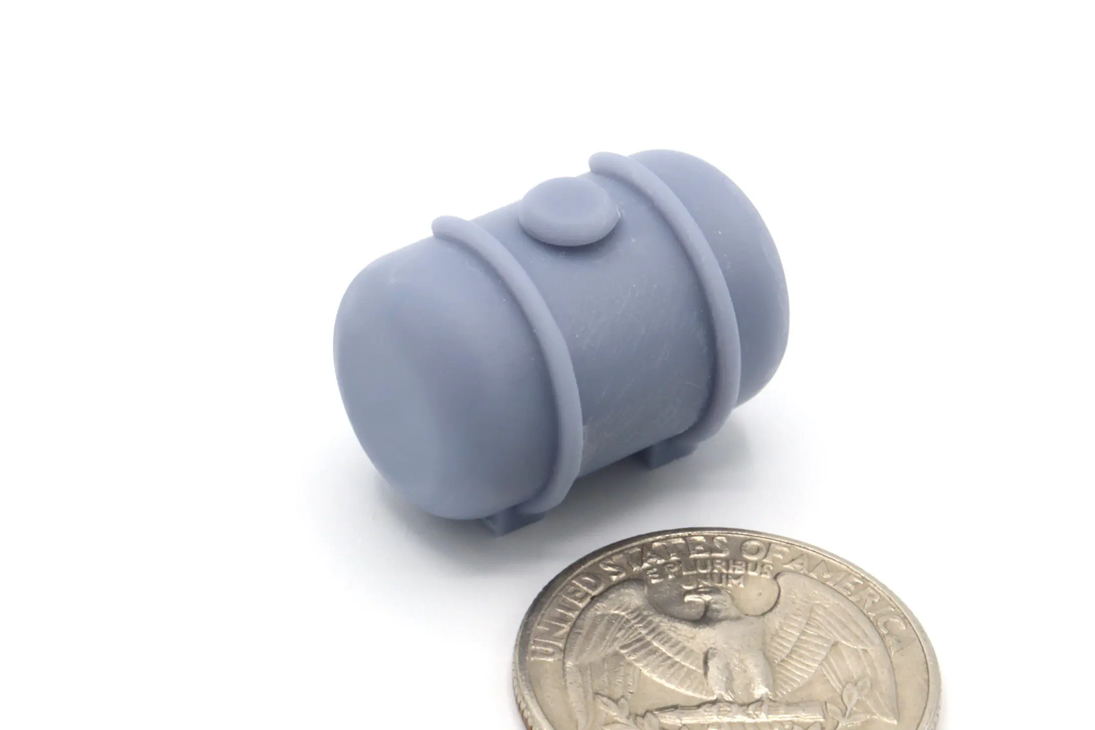 This is a 1/16th scale fuel keg for customizing your pulling tractor, car, or rat rod. The keg is 1″ wide.