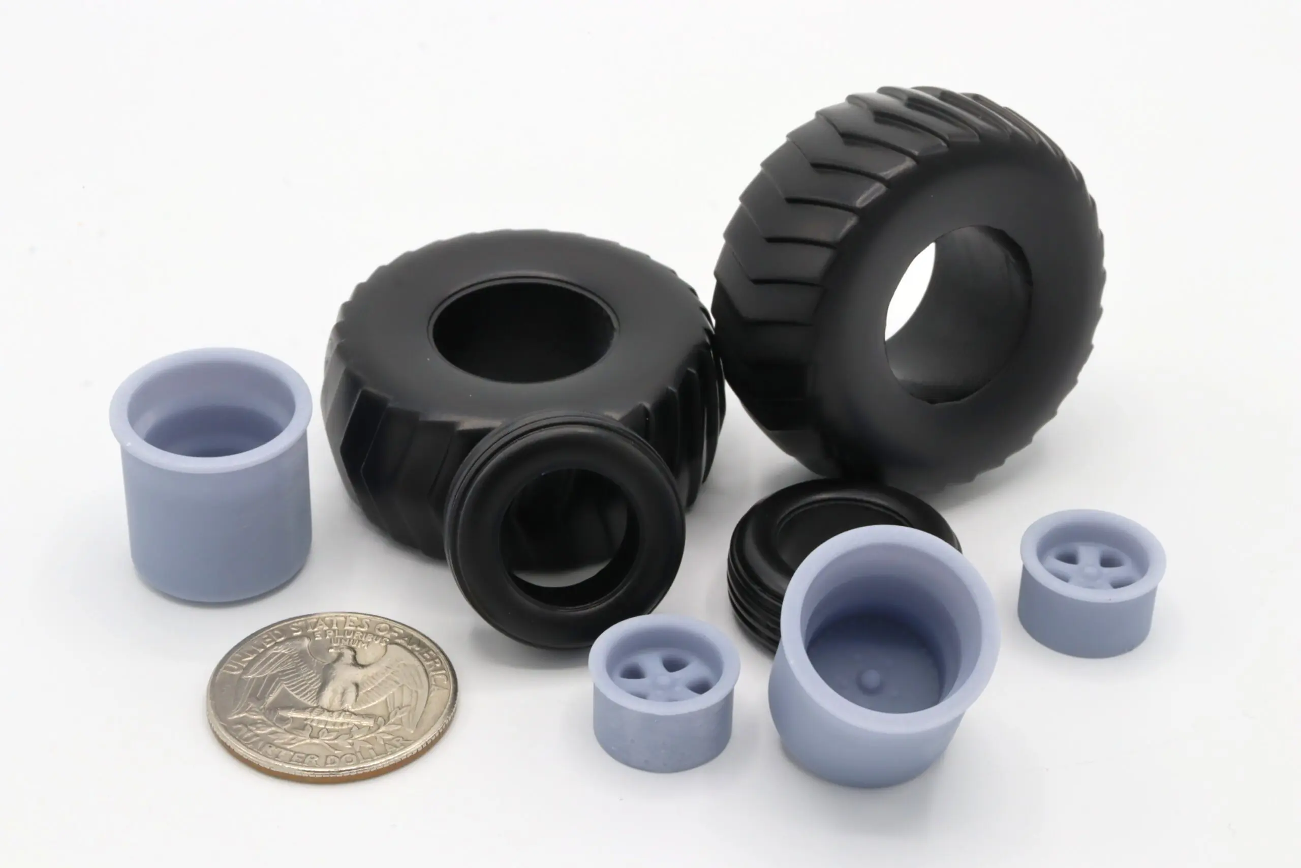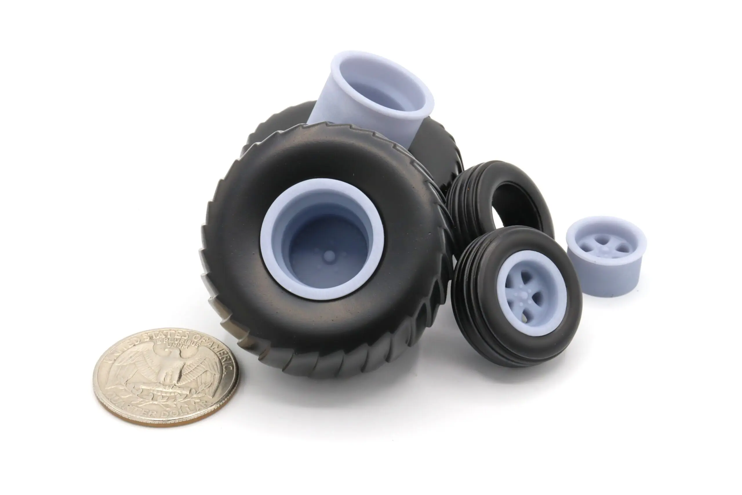 This sale is for a set of rims and tires for converting the Ertl made lawn and garden tractors to mini rod pullers. This conversion kit consists of two rear tires, two rear rims, two front tires, and two front rims.