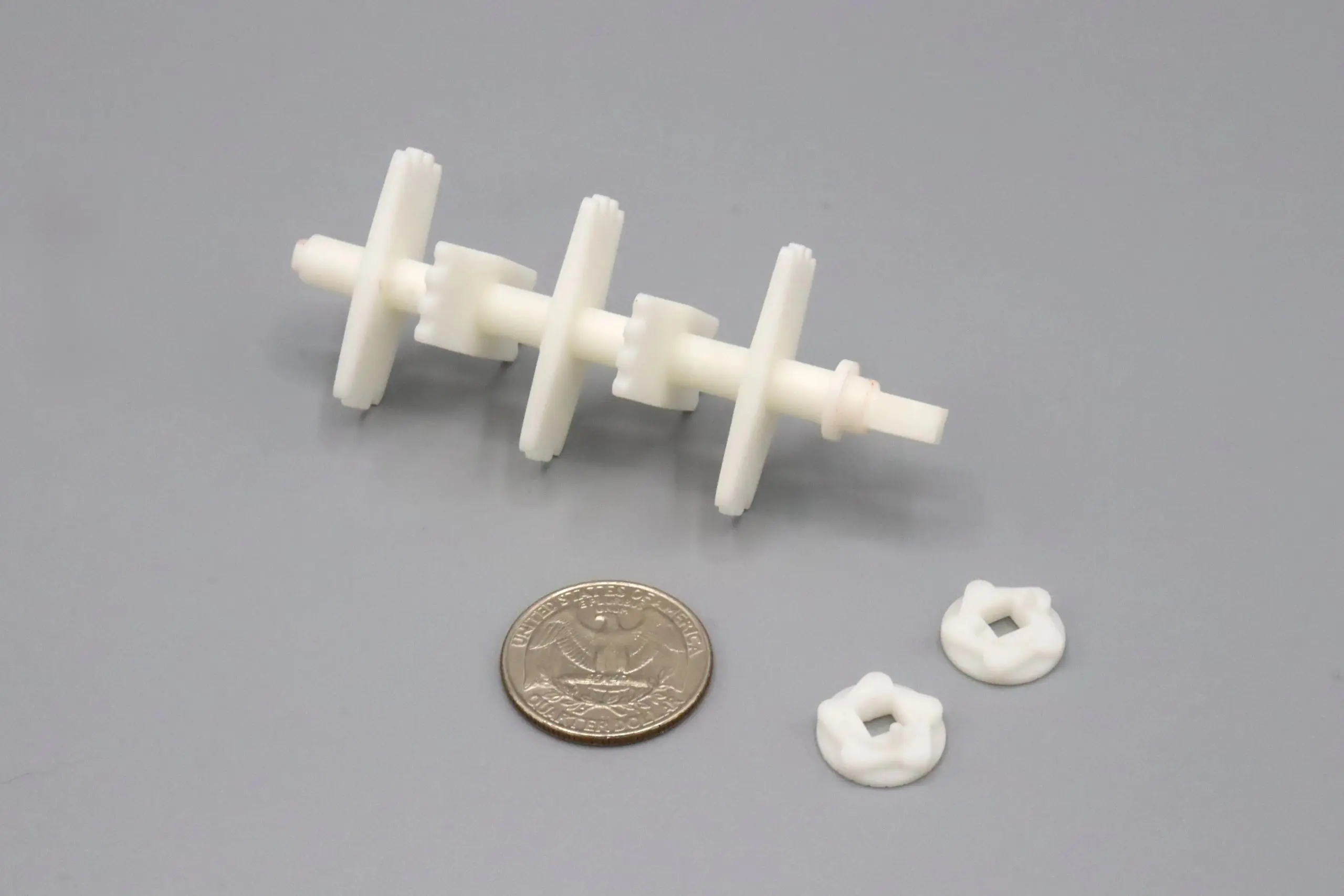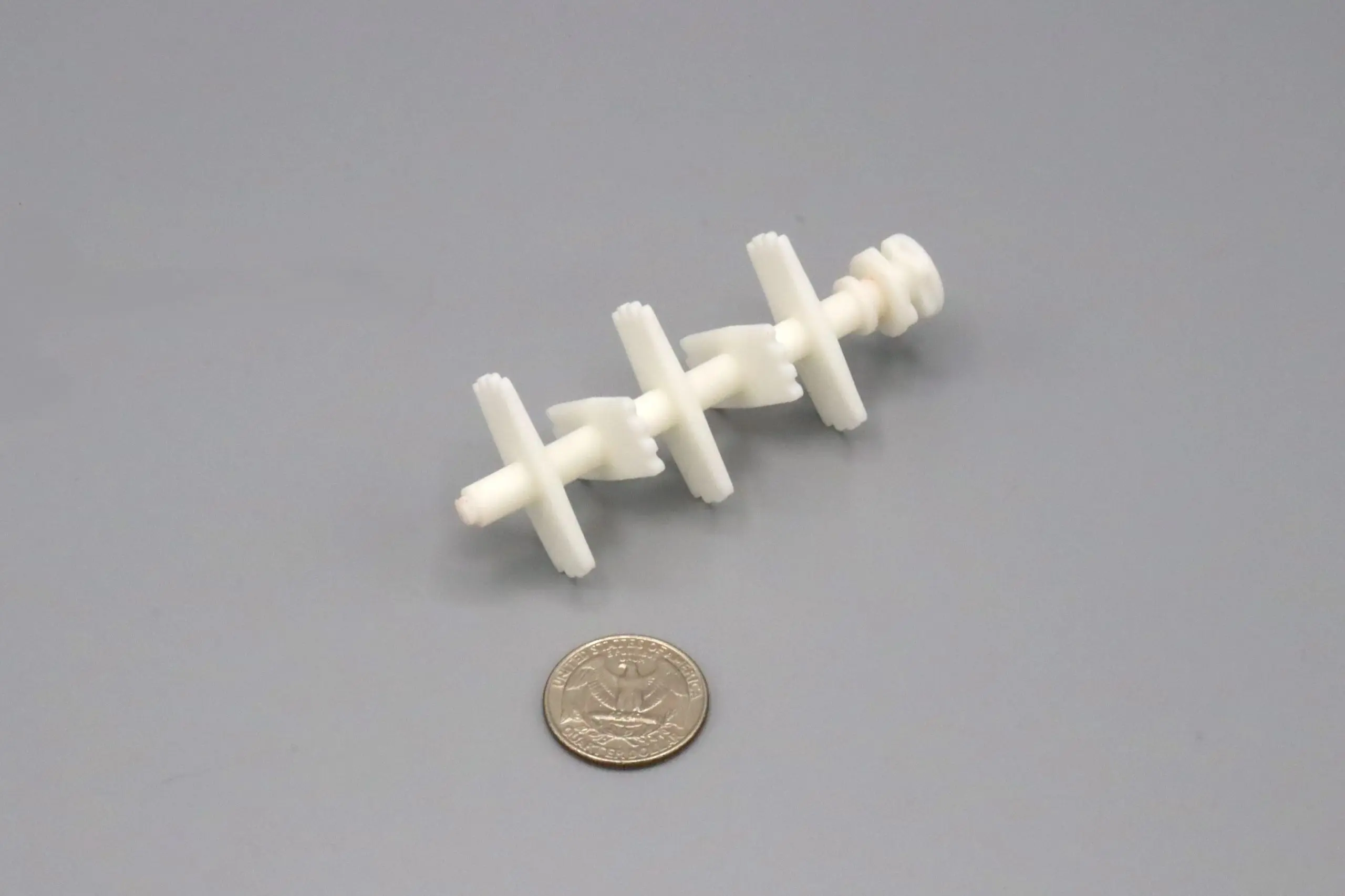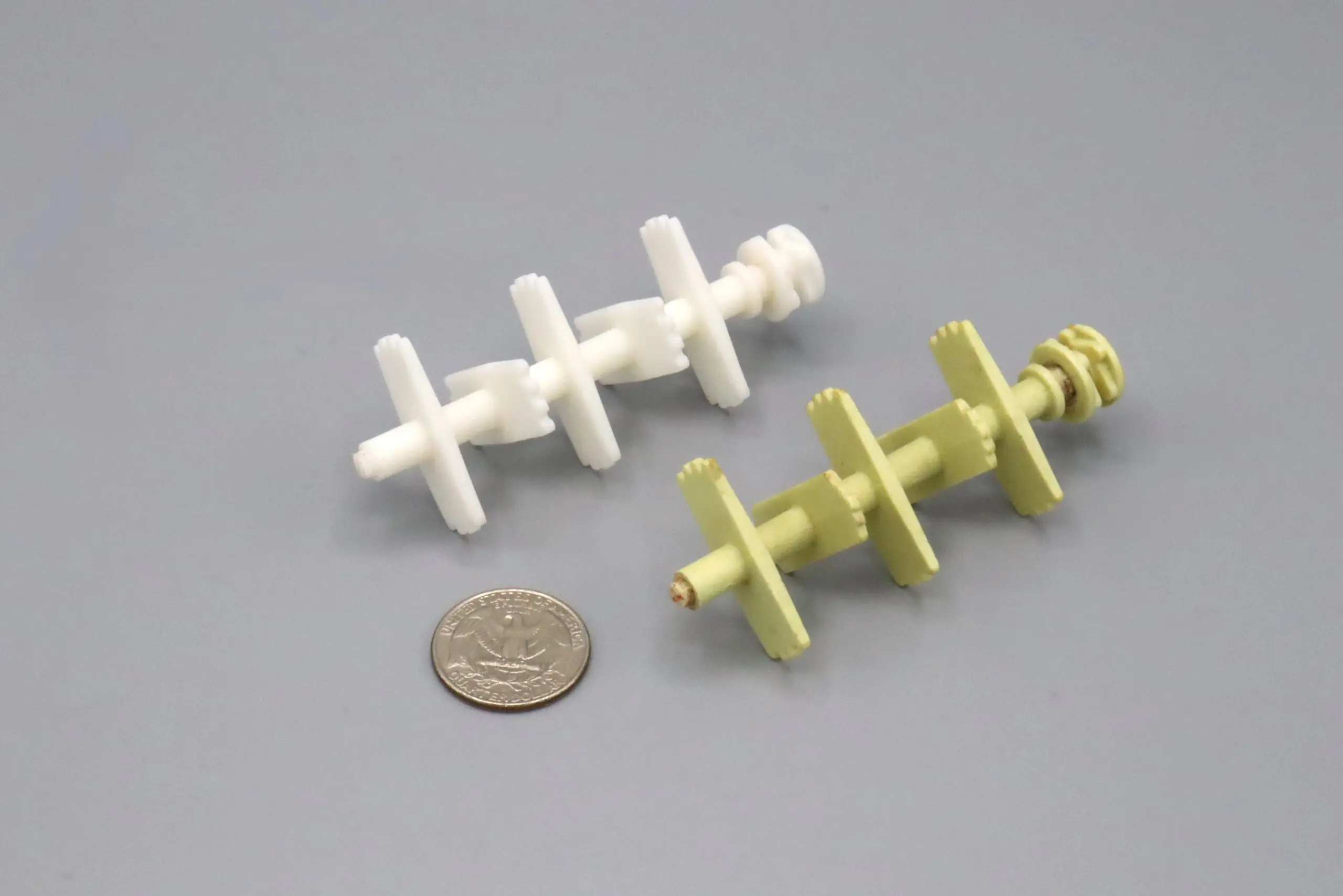 The beater consists of three parts, the main beater, and two mirrored pieces that fit together to form the chain pulley. Once the chain is installed, the pulley would be glued in place to hold as the originals did.