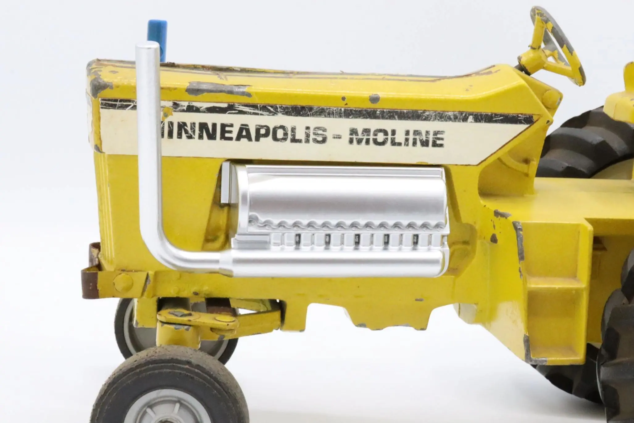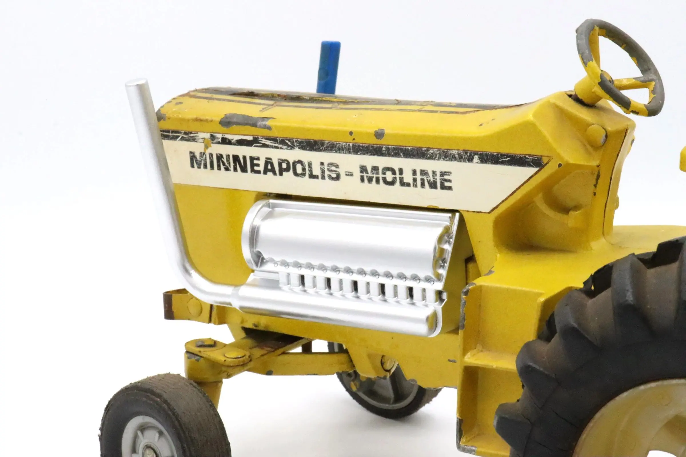 The “Mighty Minnie” Minneapolis Moline puller tractor was made by Ertl in the mid-1970s. This puller tractor featured a modified Allison aircraft V-12 engine which covered the cast in engine on the stock tractors. Ertl also made the “Flyin Farmall” and “Big Ace” as a part of a Super-Rod collection of puller tractors.