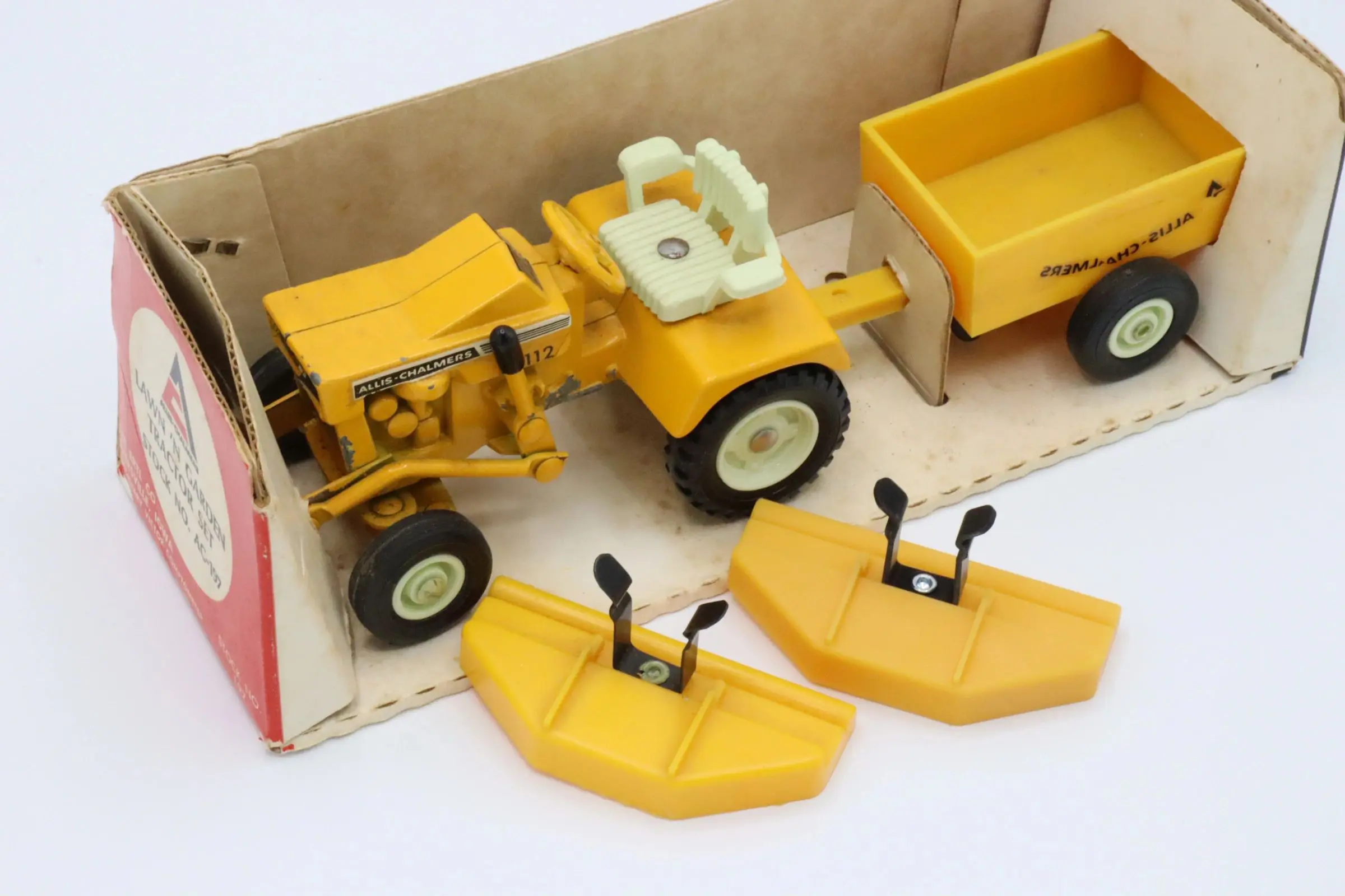 This sale is for a remade lawn mower deck for the Allis-Chalmers B110 and B112 lawn tractors made by Ertl in the 1960s and 70s. The mower deck measure and fit just as the originals did. While the original had a metal clip to mount to the mower, the remade version uses a resin printed clip.