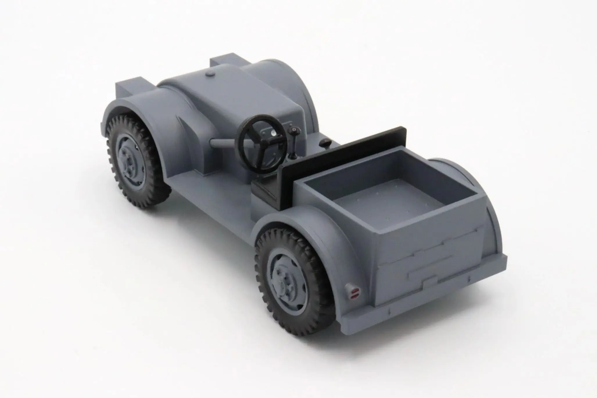 Built from 1942 till 1944, the Minneapolis Moline NTX was a four wheel drive vehicle used by the military. The original NTX production is estimated to be around 840 units. This custom 32nd Scale Minneapolis Moline NTX is painted in Battleship Grey with matching painted rims. The fine details such as the gauges, taillight, and shifter knobs are all hand painted for added details.