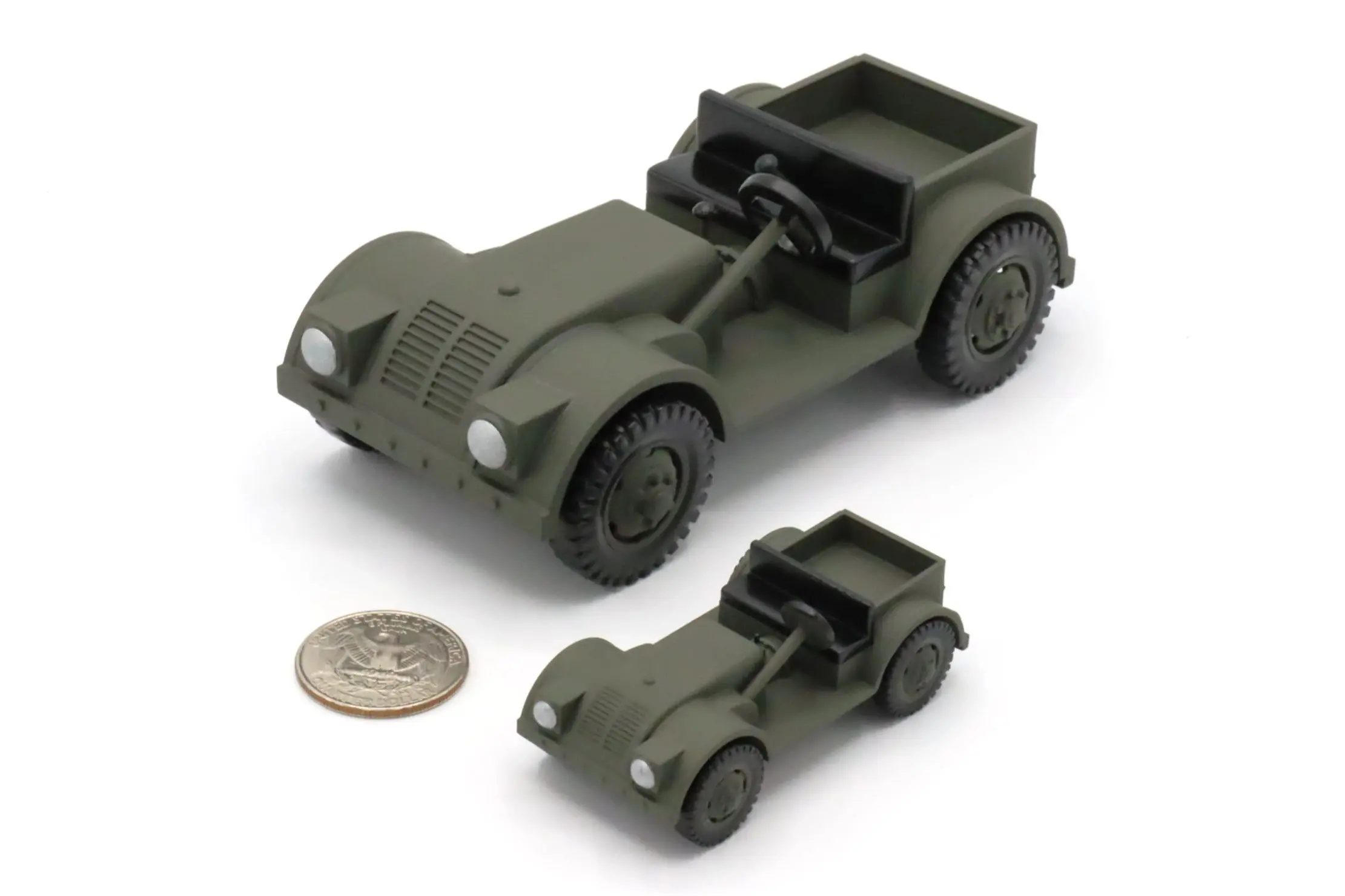 Built from 1942 till 1944, the Minneapolis Moline NTX was a four wheel drive vehicle used by the military. The original NTX production is estimated to be around 840 units. This custom 32nd Scale Minneapolis Moline NTX is painted in Military Olive Drab Green with matching painted rims. The fine details such as the gauges, taillight, and shifter knobs are all hand painted for added details.