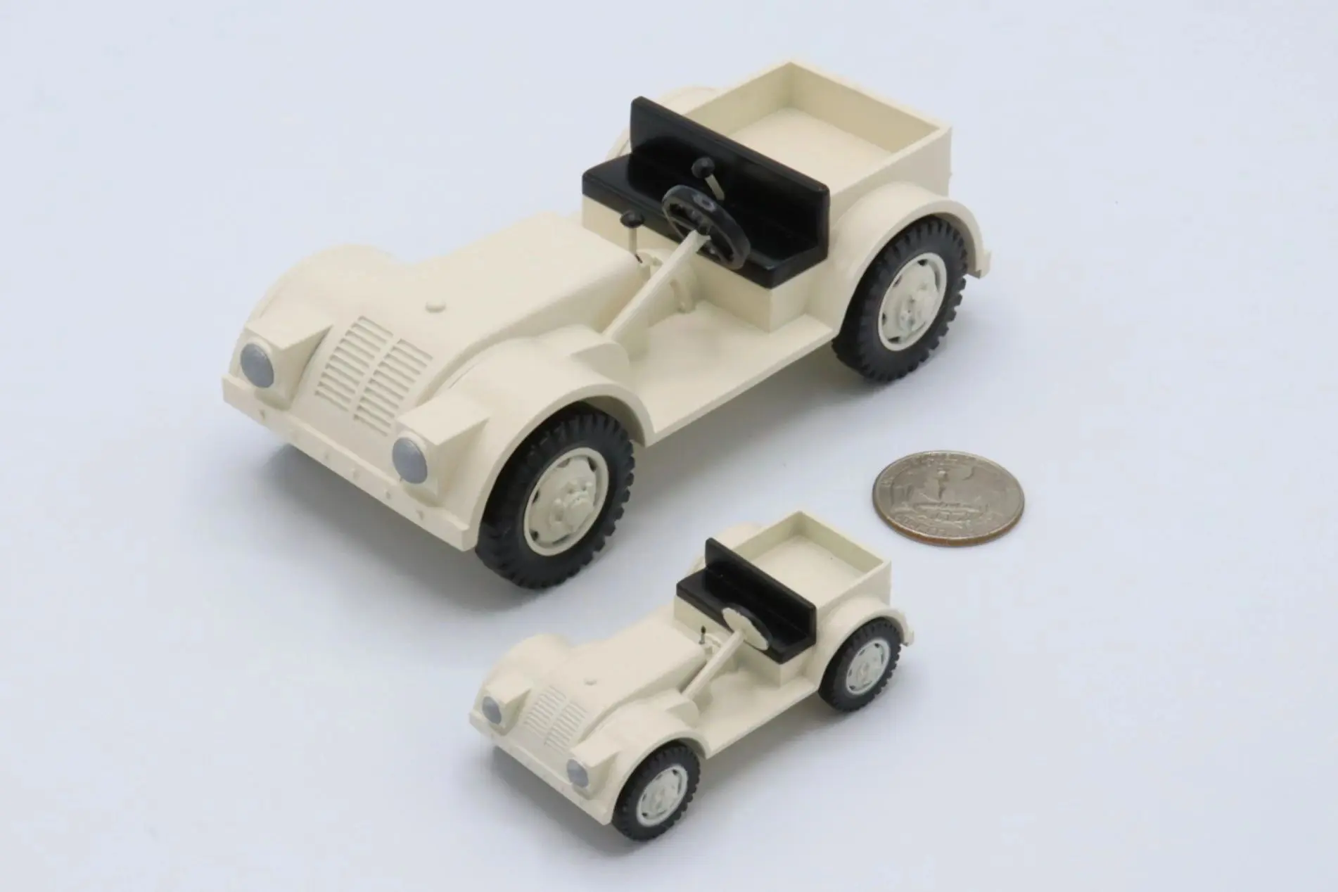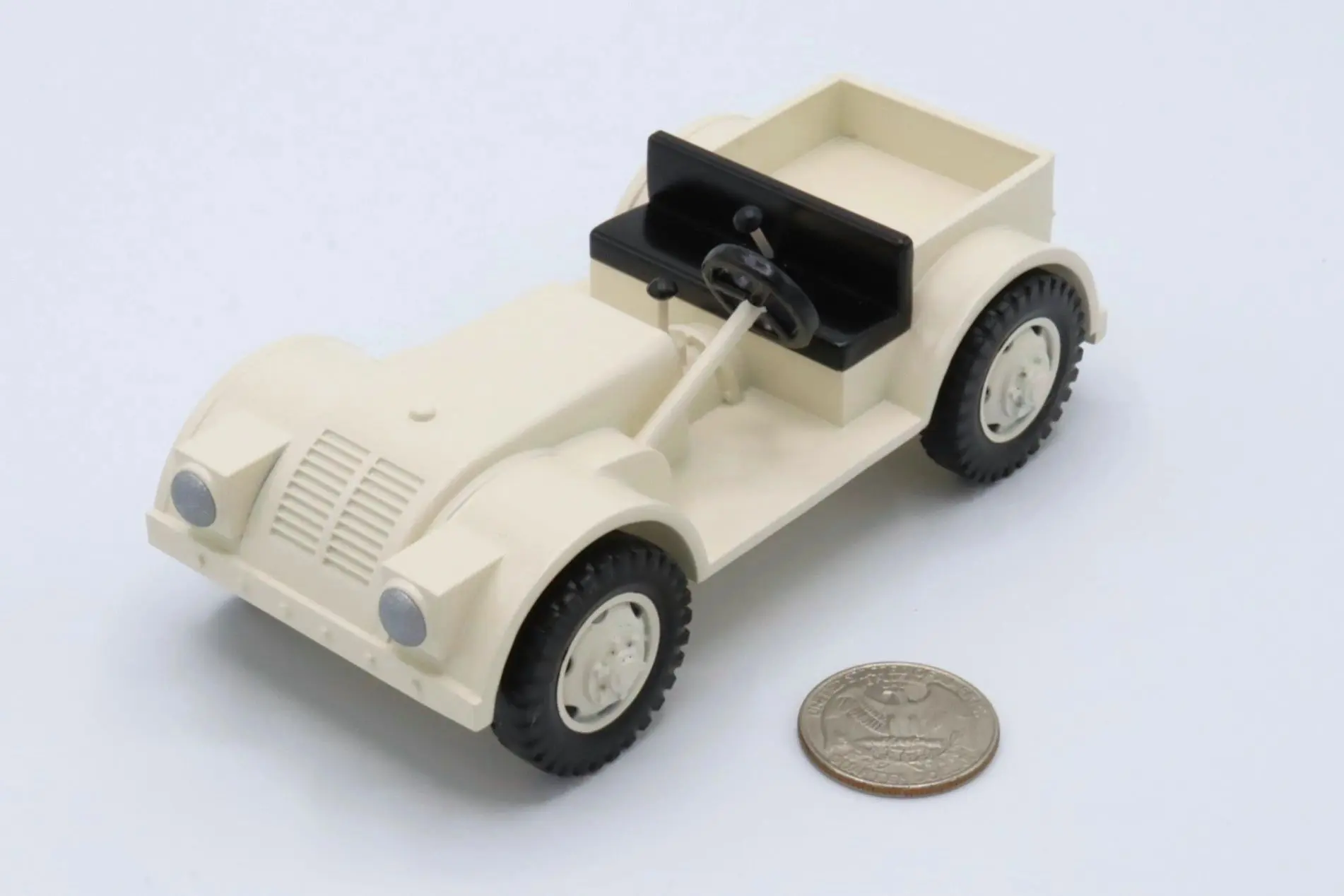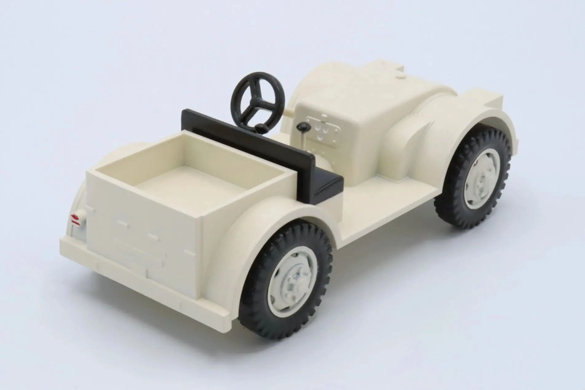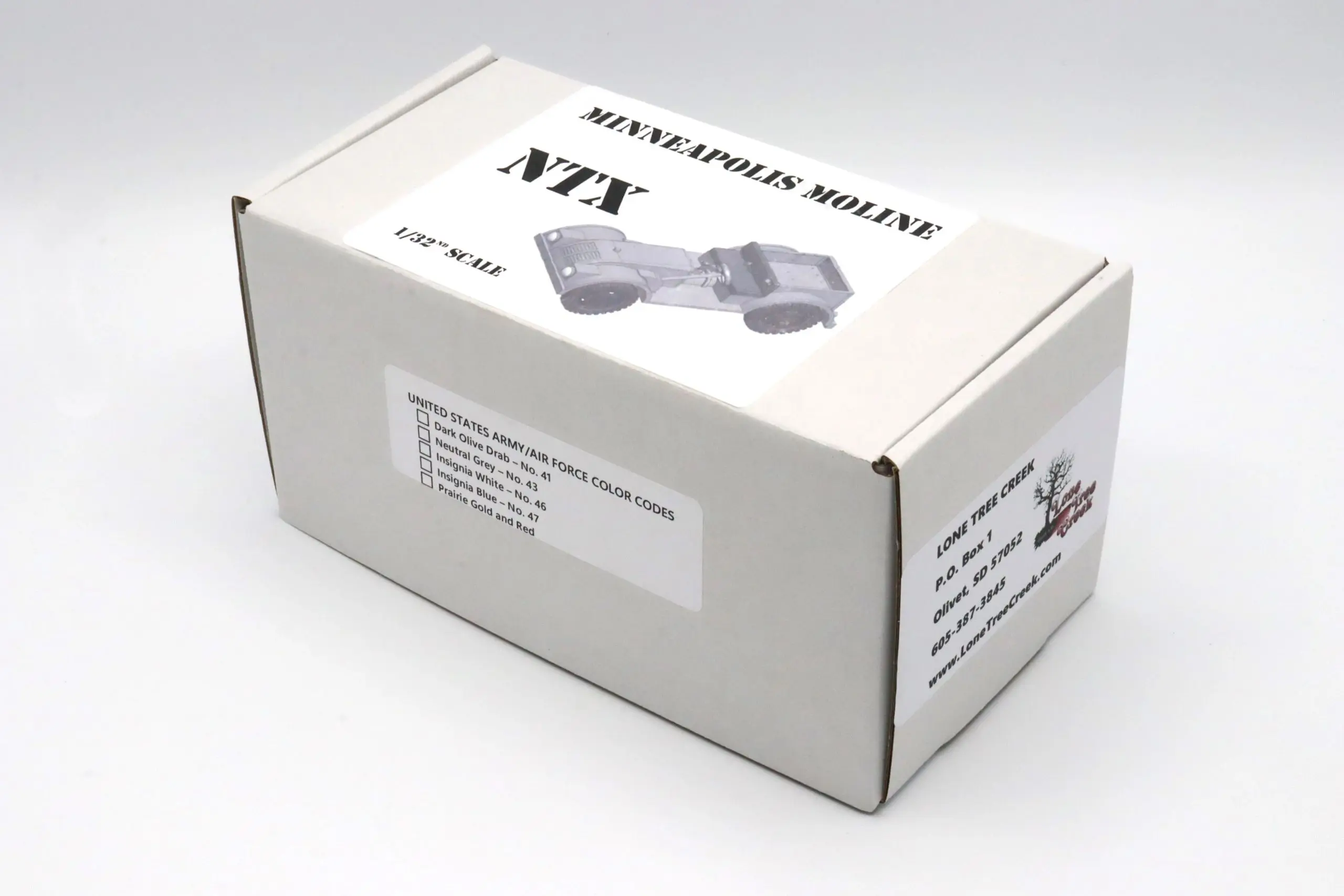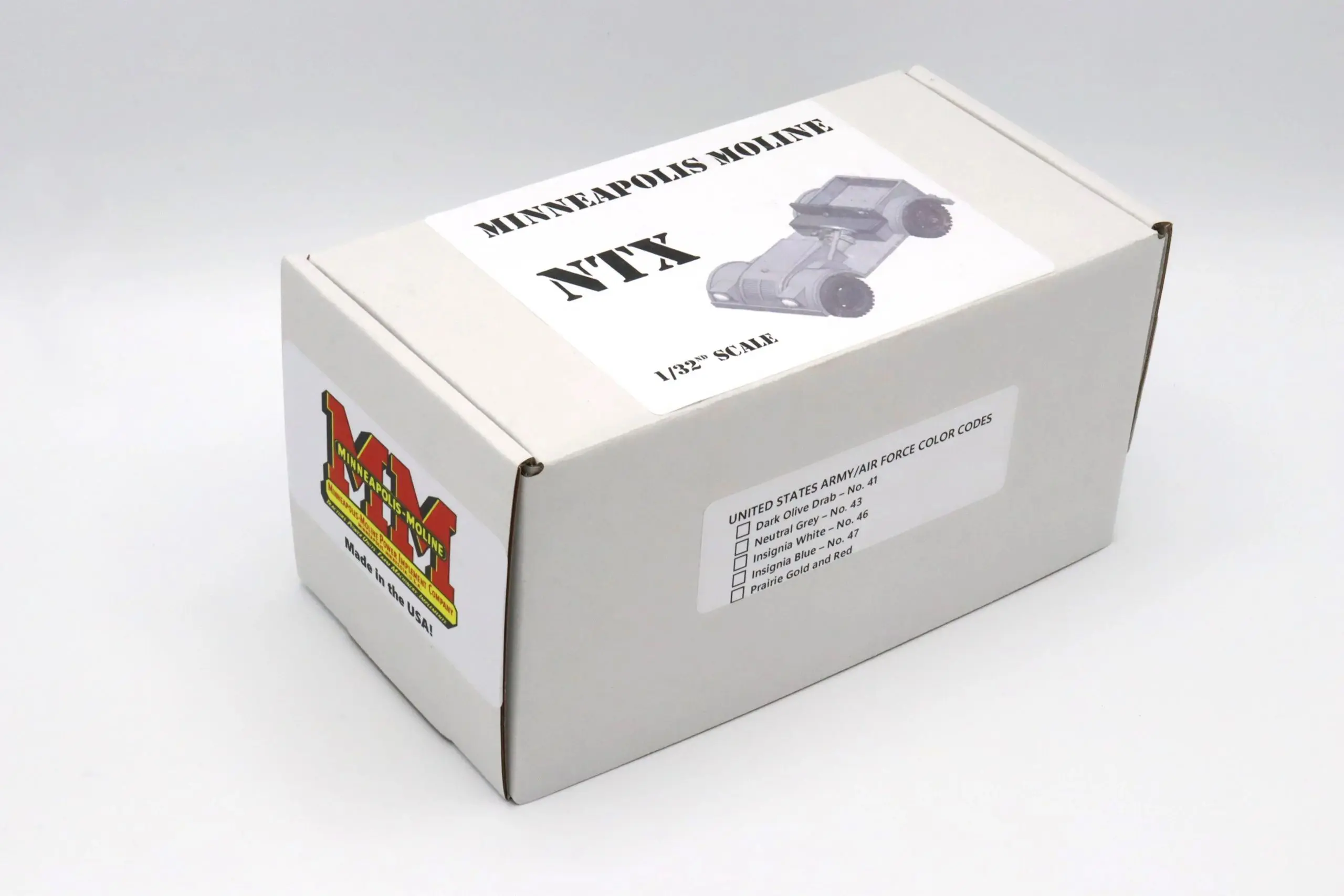 Built from 1942 till 1944, the Minneapolis Moline NTX was a four wheel drive vehicle used by the military. The original NTX production is estimated to be around 840 units. This custom 32nd Scale Minneapolis Moline NTX is painted in Pacific Sands White with matching painted rims. The fine details such as the gauges, taillight, and shifter knobs are all hand painted for added details.