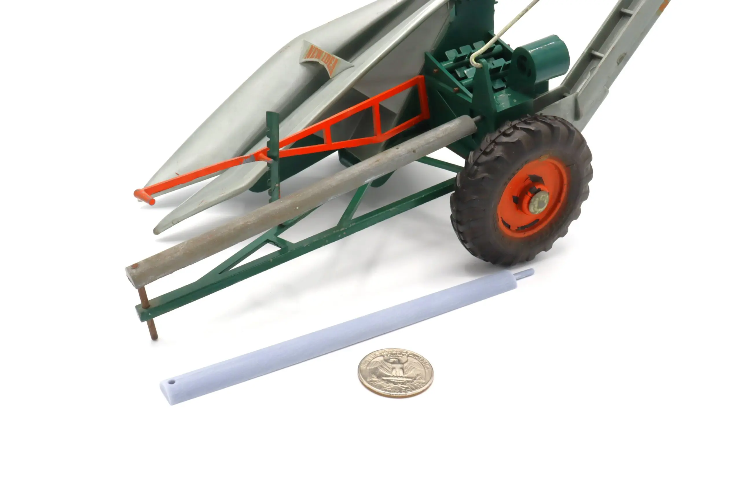 This PTO shaft is a replacement to the original diecast version that is often times missing from the Topping Models corn picker.