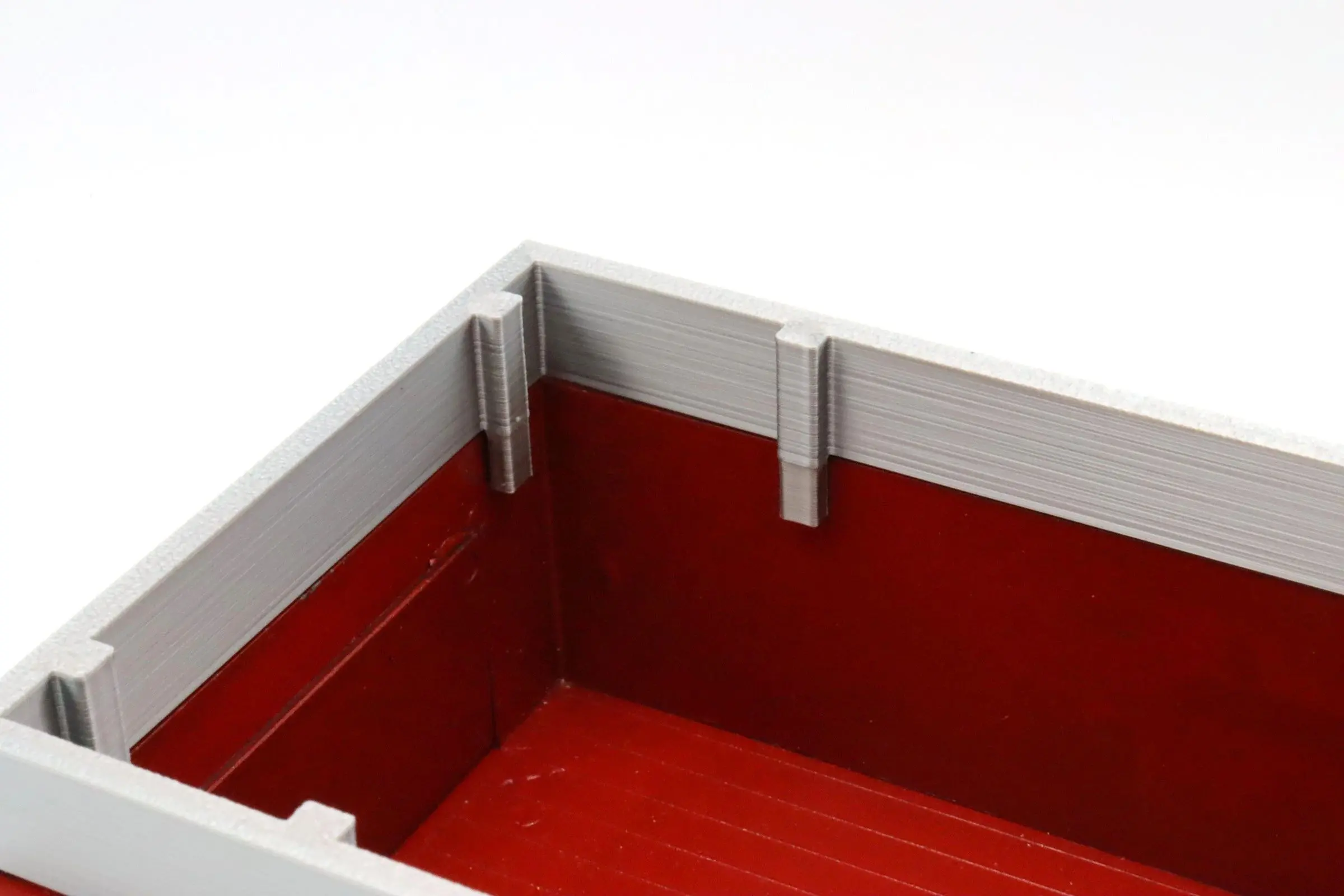 This item is a 3D printed wagon extension that is designed to extend the volume of the Roadmaster wagon. The extension seats against the inside wall of the wagon box and adds detail to the Reuhl line.