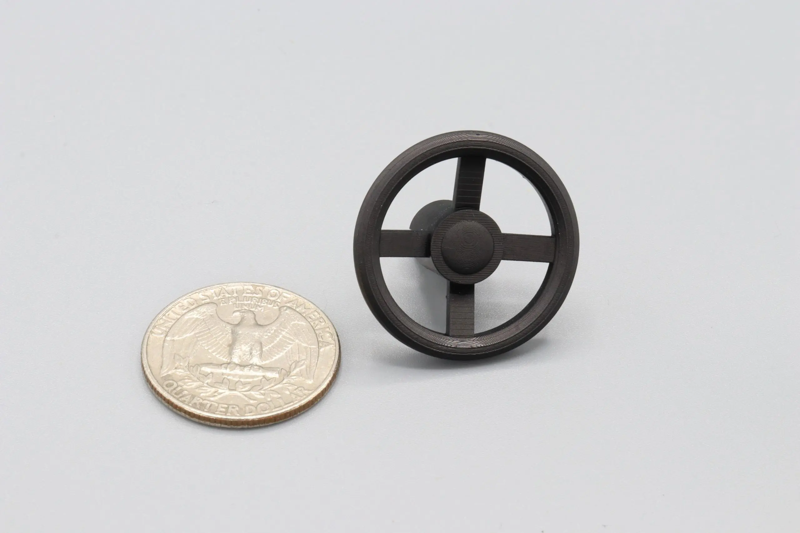 This steering wheel is a direct replacement for the original and shows the original details down to the ribbed wheel.