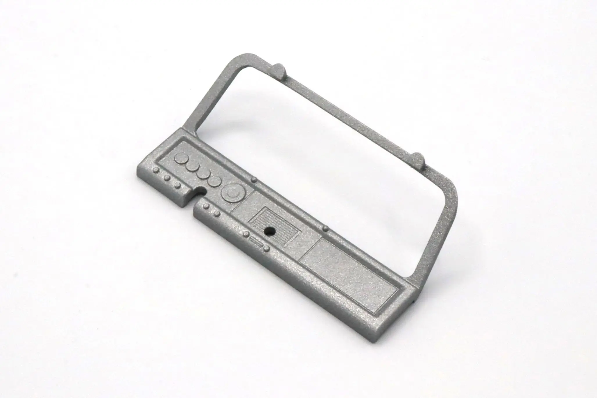 This windshield/dash is a direct replacement and features all the original detail of the original. The tabs allow for plastic windshields to be installed.